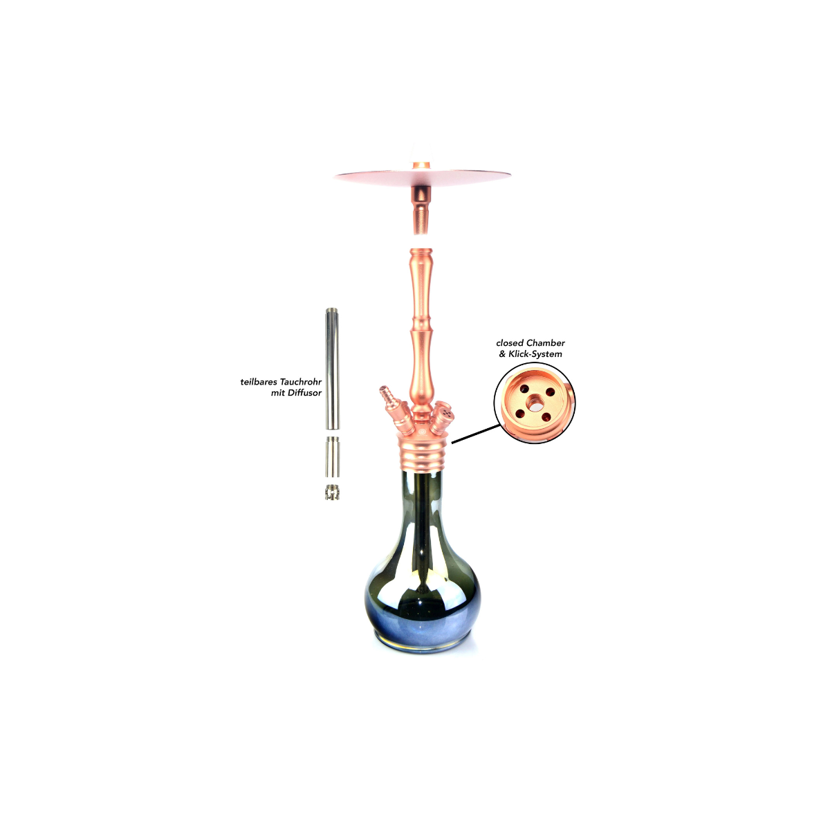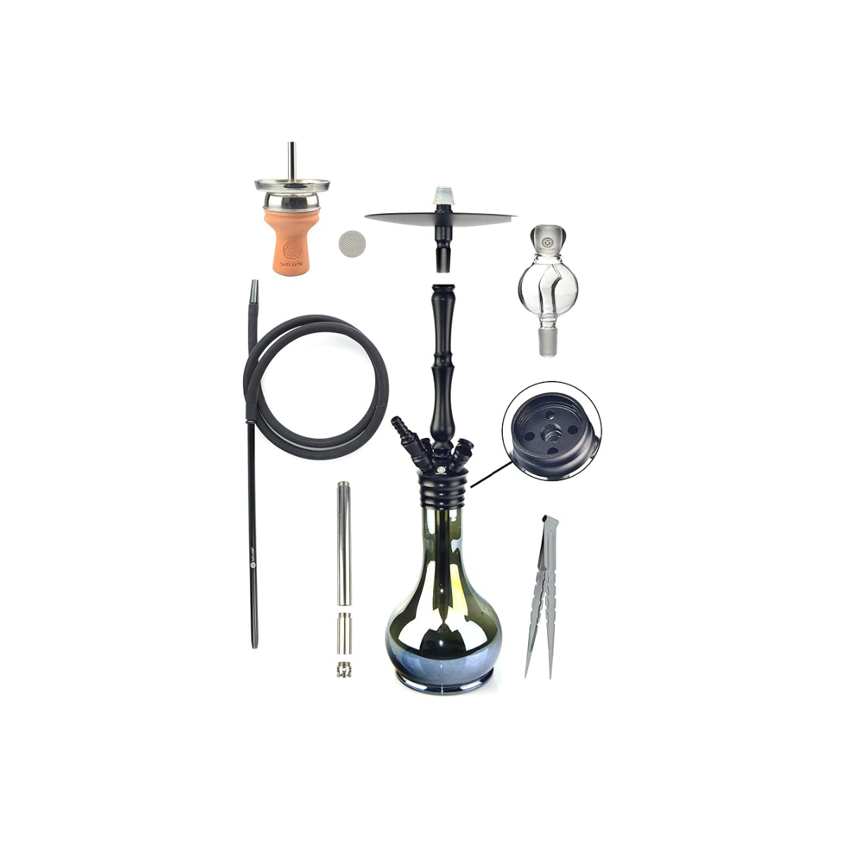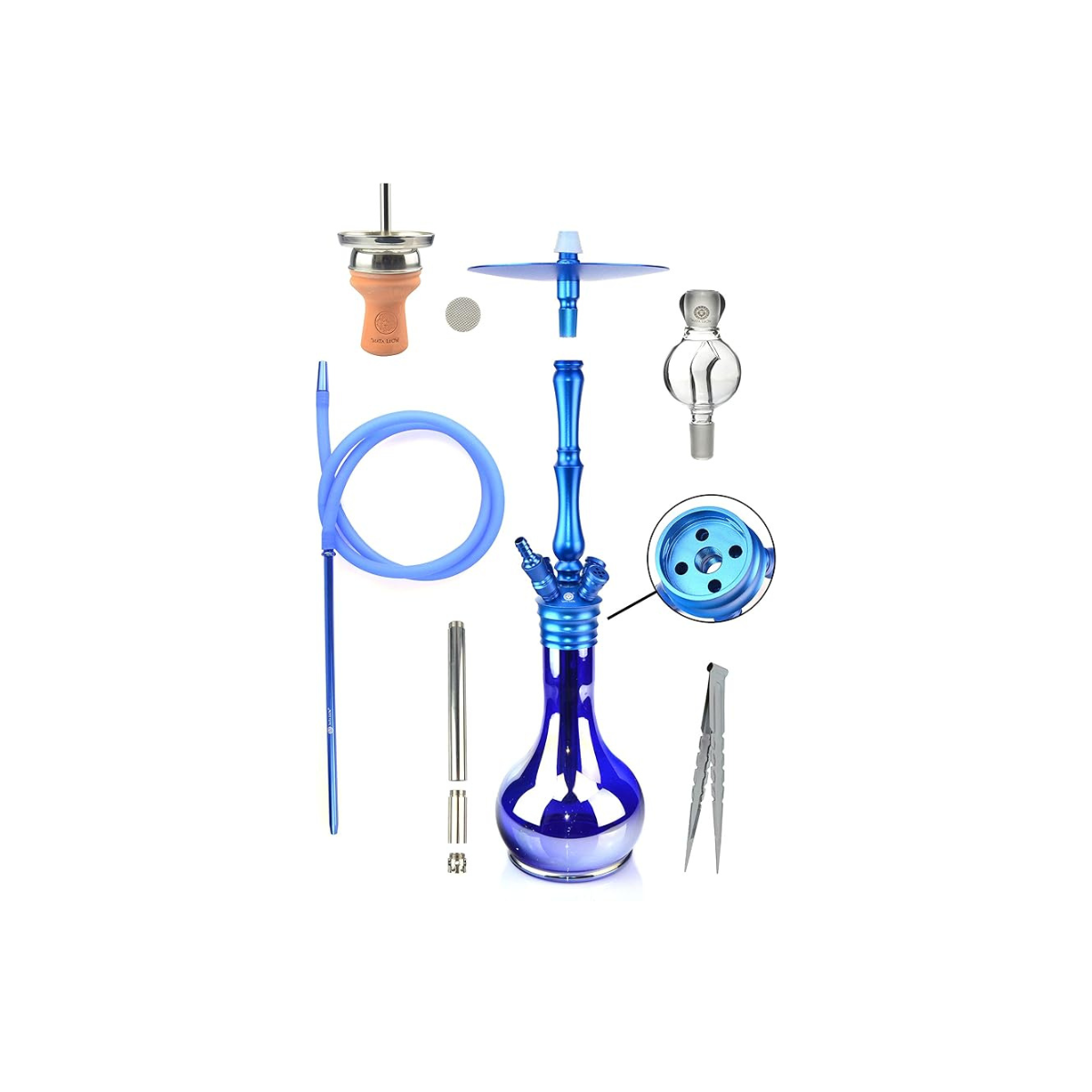Die Mata Leon Zaragossa Shisha besticht durch ihr modernes Design aus eloxiertem Aluminium und Glas. Mit einer Höhe von 60 cm und intensiven Farben überzeugt sie durch ihre hochwertige Verarbeitung und Funktionalität. Entwickelt mit über 20 Jahren Erfahrung in der Shisha-Herstellung, bietet sie eine ausgezeichnete Raucherfahrung.