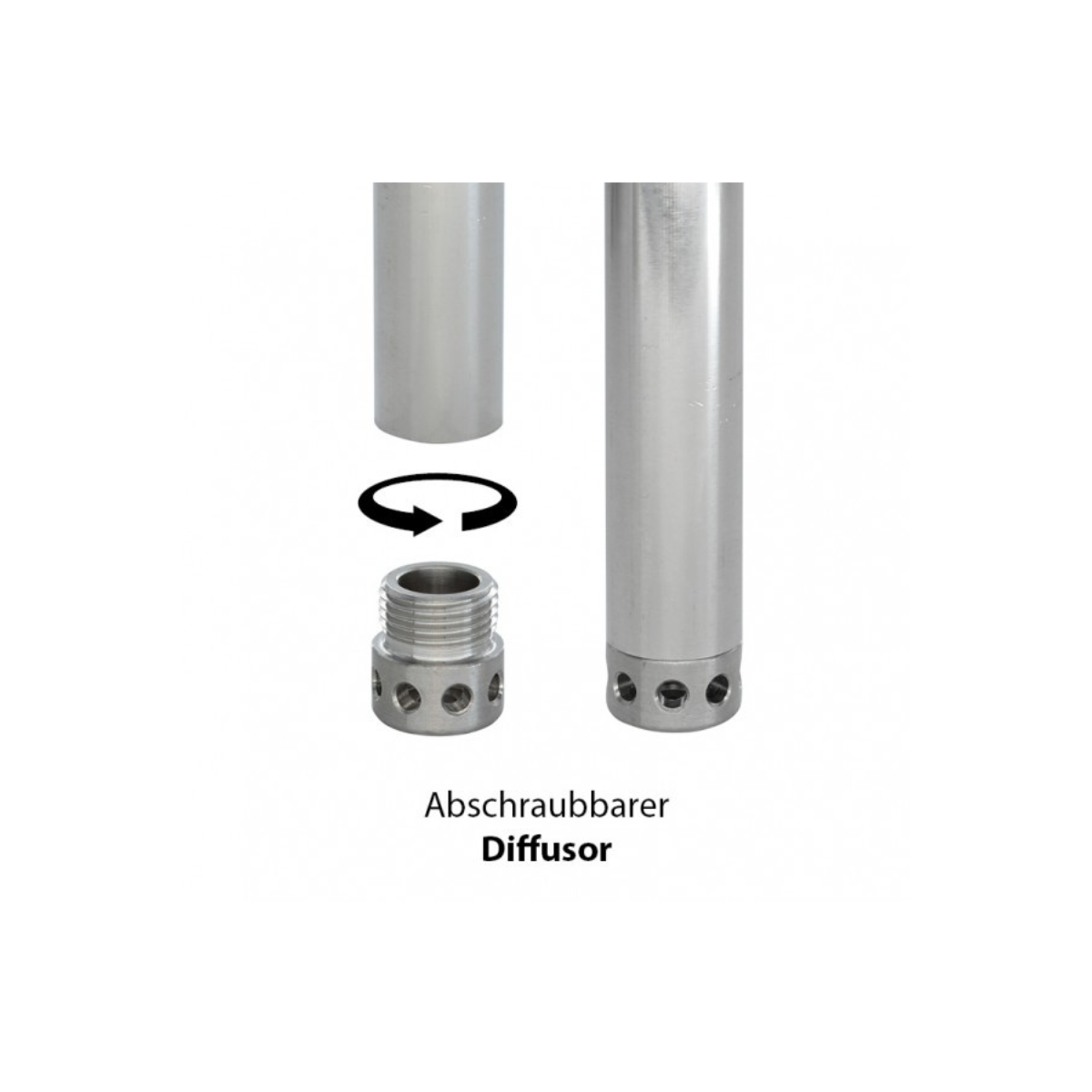 - Tauchrohr inkl. Diffusor (abschraubbar bei Bedarf) aus V2A Edelstahl