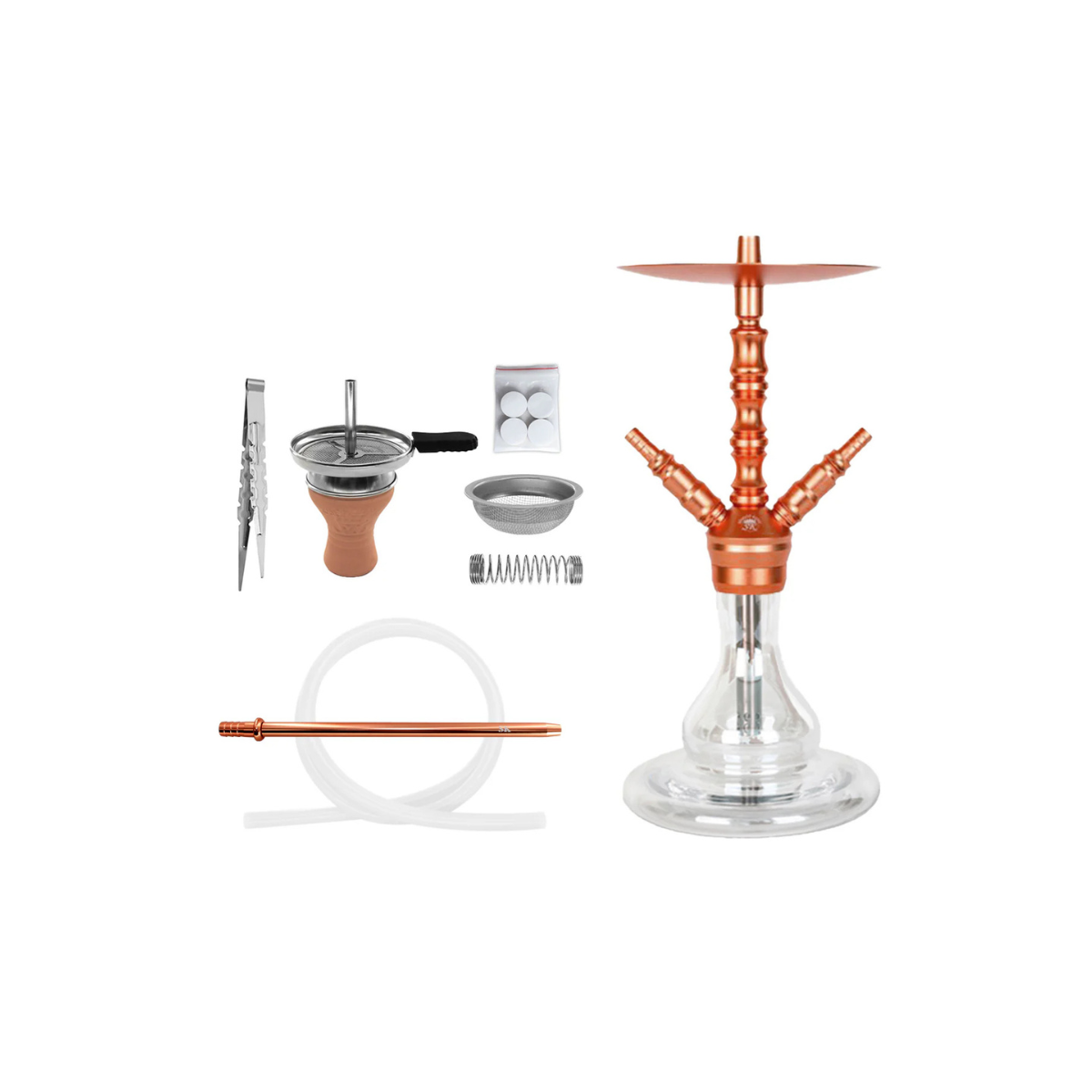 Die SKS 633 Fiesta ist eine gut verarbeitete Aluminium Wasserpfeife. Ihr erhaltet hier ein Komplettset mit 2 Schlauchanschlüssen und viel Zubehör. Sie besitzt ein Klick-System das extrem sauber läuft und ein Closed Chamber System. Die Pfeife wird mit einem Silikonschlauch & Mundstück geliefert. Zudem erhaltet Ihr vom Hersteller noch ein Kaminkopfset.