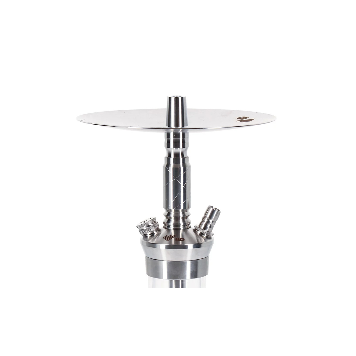 Trotz ihrer geringen Größe von 27cm ist diese Shisha mit einigen Besonderheiten ausgestattet. Dazu zählen das Closed Chamber System, ein abschraubbarer Diffusor, 1 Schlauchanschluss, 1 Ausblasventil und ein 18/8 Innenschliff für den Kopfadapter, wodurch sich bei Bedarf auch ein Molassefänger, Vorkühler oder ähnliches mit 18/8 Schliff anbringen lässt.